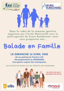 - 12/04/2026 Balade en Famille à Grans au parking du Foirail à 13h30